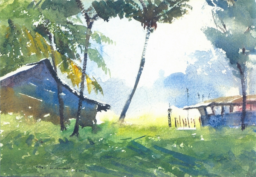 landscape painting. watercolor on paper. 02 January 1991